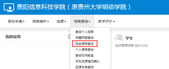 2.查询班级课表:【信息查询】-【班级课表查询】
