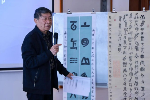 贵州省水家学会副会长、贵州民族大学韦宗林教授从水族古文字与古汉字比较视角,补充说明了水文的造字特点、字形特征,将水文与其他刻画符号进行类比论证,揭示水语与古汉语的关系。