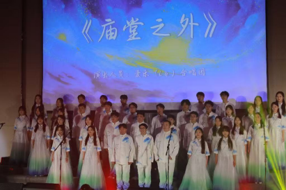 音乐表演流行组五位同学演唱的《This Is Me》充满力量与激情,杨双林的《别君叹》、龙成成的《望乡词》古韵悠扬,引发全场观众的情感共鸣。爱乐合唱团的混声合唱《庙堂之外》大气磅礴,将整场演出的氛围推向高潮。最后,全体演员共同唱响《以梦为马》,歌声中饱含着对未来的无限憧憬与期许,为本次汇演画上圆满句号。