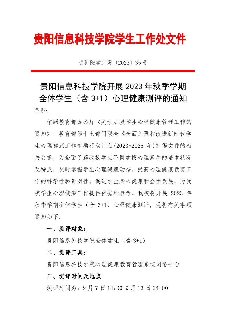 beat365中文官方网站开展全体学生(含3+1)心理健康测评的通知