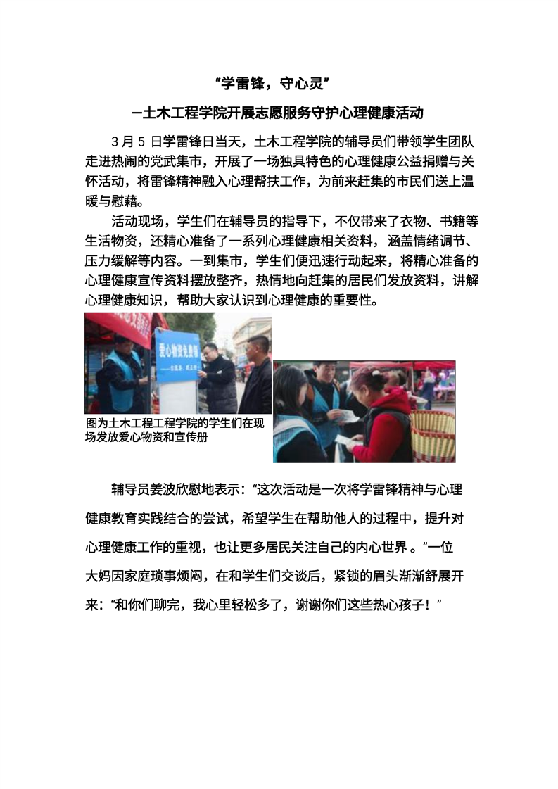 “学雷锋,守心灵”——土木工程学院开展志愿服务守护心理健康活动