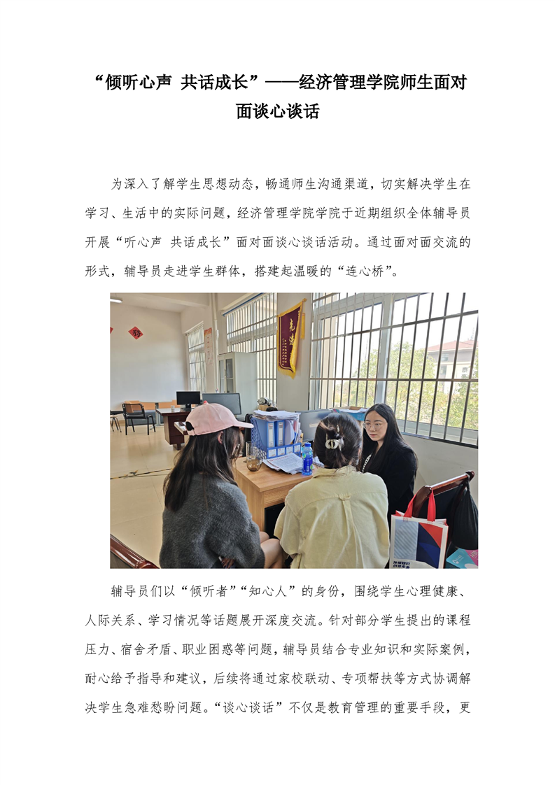 “倾听心声,共话成长”—经济管理学院师生面对面谈心谈话