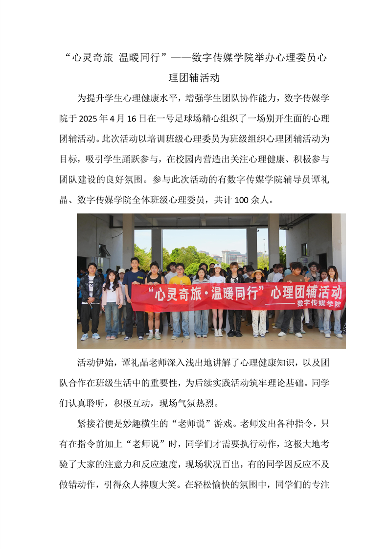 “心灵奇旅 温暖同行”——数字传媒学院举办心理委员心理团辅活动