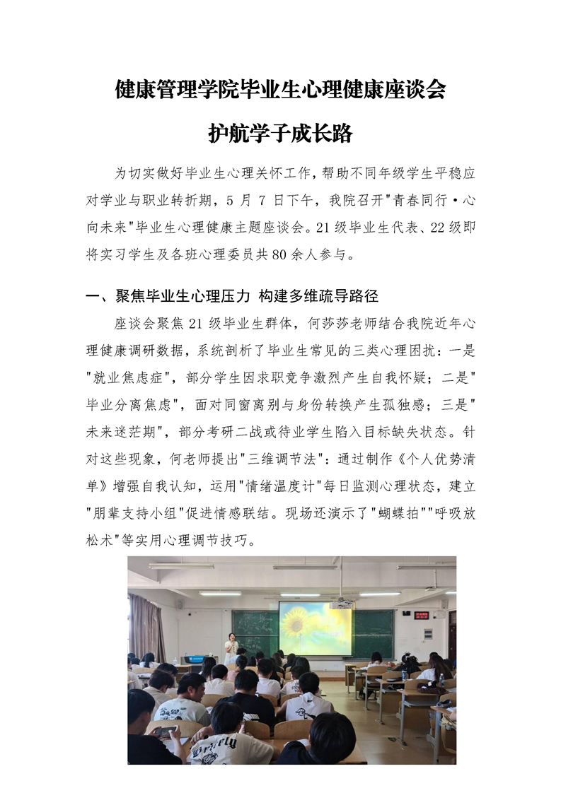 “青春同行,心向未来”——健康管理学院开展毕业生心理健康座谈会护航学子成长路