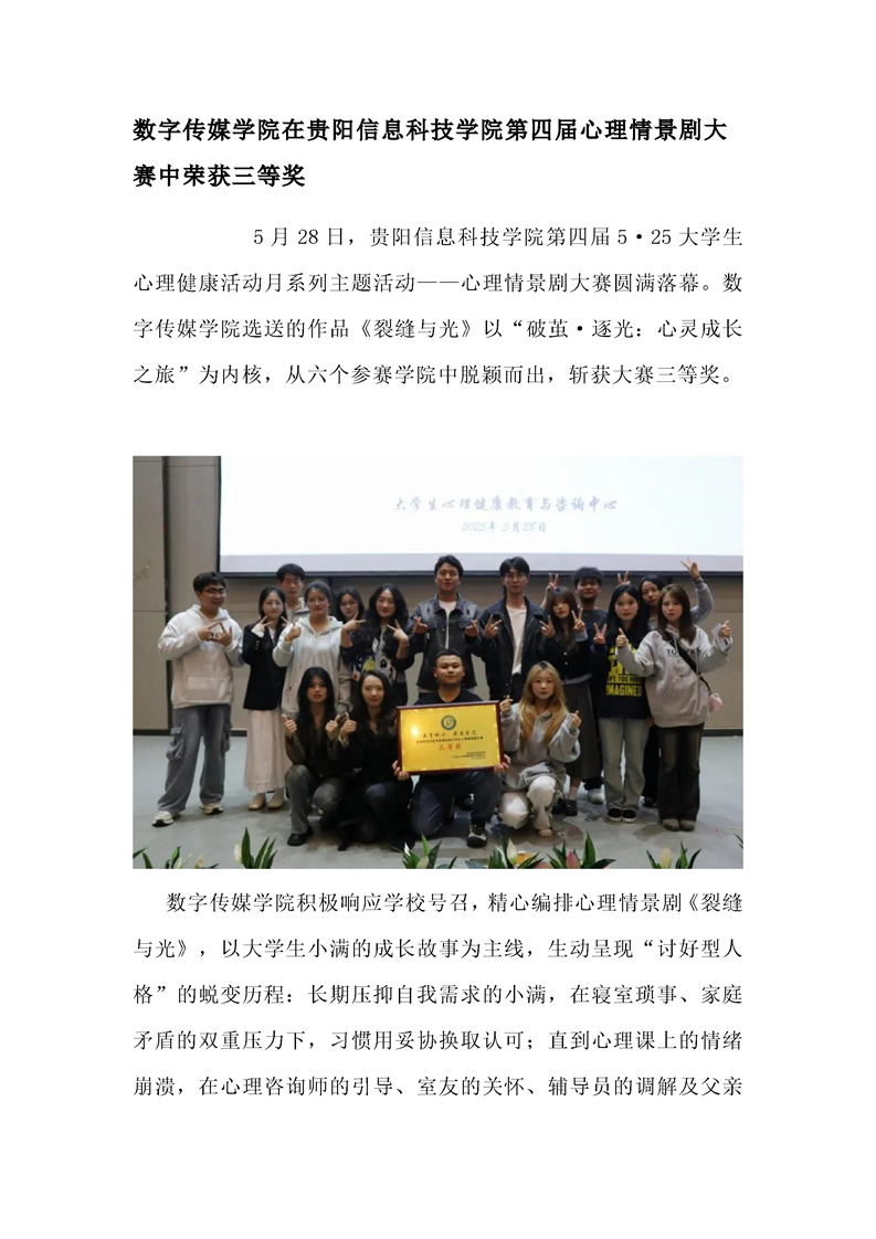 数字传媒学院在beat365中文官方网站第四届心理情景剧大赛中荣获三等奖