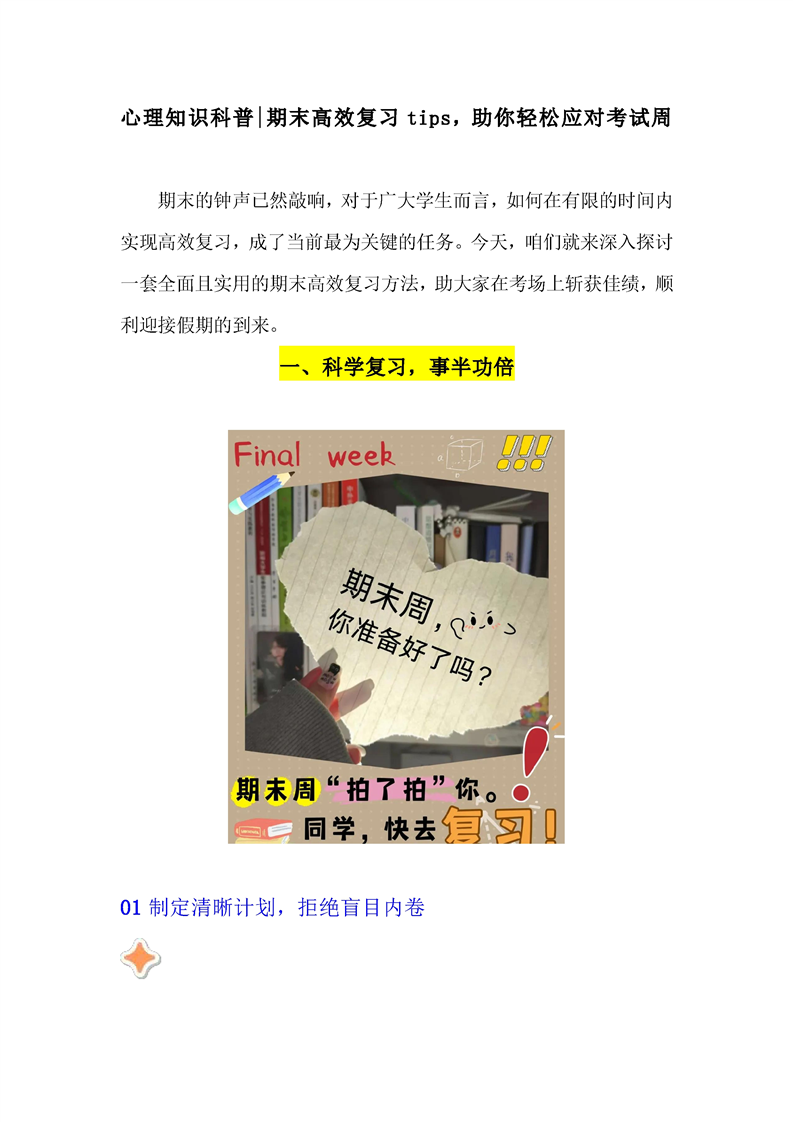 心理知识科普|期末高效复习tips,助你轻松应对考试周