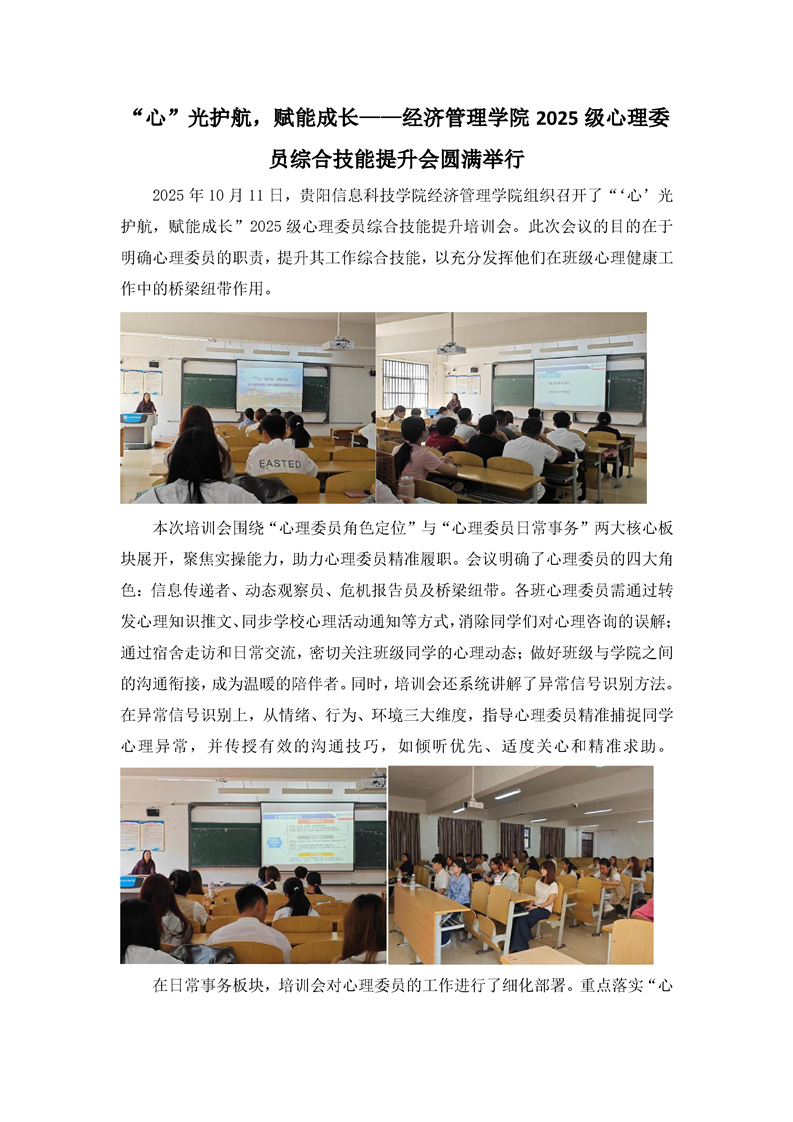 “心”光护航,赋能成长——经济管理学院2025级心理委员综合技能提升会圆满举行