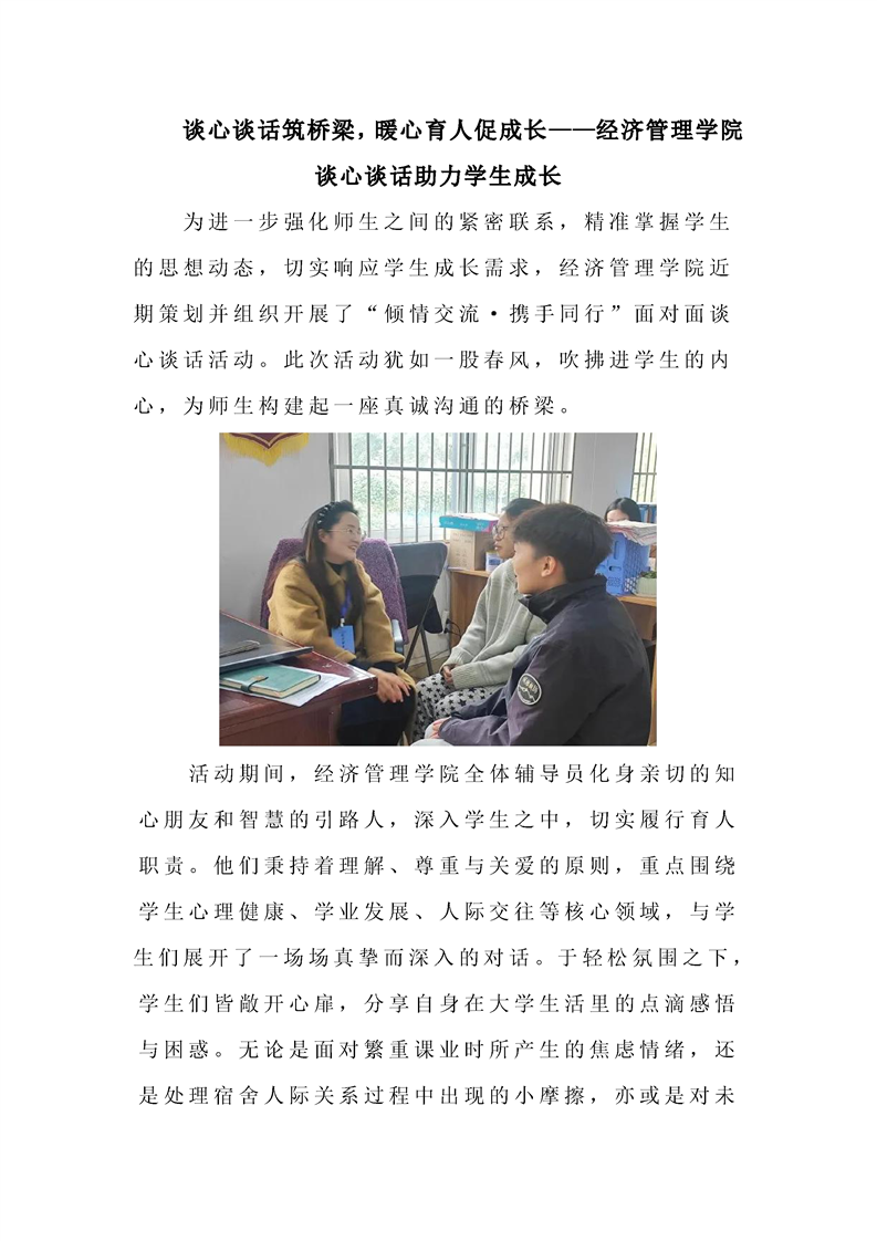 谈心谈话筑桥梁,暖心育人促成长——经济管理学院谈心谈话助力学生成长