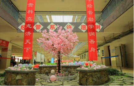 经管楼下,许愿树旁!一副十米长的大对联为经管学子指明方向,“一卷诗书满腹才华经管勤学润吾身,万丈豪情千秋伟业贵科立志济天下!”三十个字,字字如珠玑,一旁的家长寄语,句句是箴言。经管学子寒窗十年终圆梦,“立志”迎新便是要引领他们以豪情壮志谱写未来的新篇章。