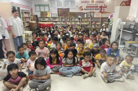 青春献爱,心系板当。为了从小培养小朋友们民族精神,弘扬中华民族传统文化,青鸽服务队的同学们在圆梦社区特别准备了一场剪纸活动。“一剪之趣夺神功,美在民间永不休”这是郭若沫曾对剪纸艺术的赞誉。大家在同学们的引导下,将红色卡纸进行折叠、描画、裁剪,同时每一个人在剪纸过程中聆听了非遗故事,感受非遗魅力,体验剪纸艺术的独特魅力与神秘奇巧,为当地居民剪出具有民族特色的作品。