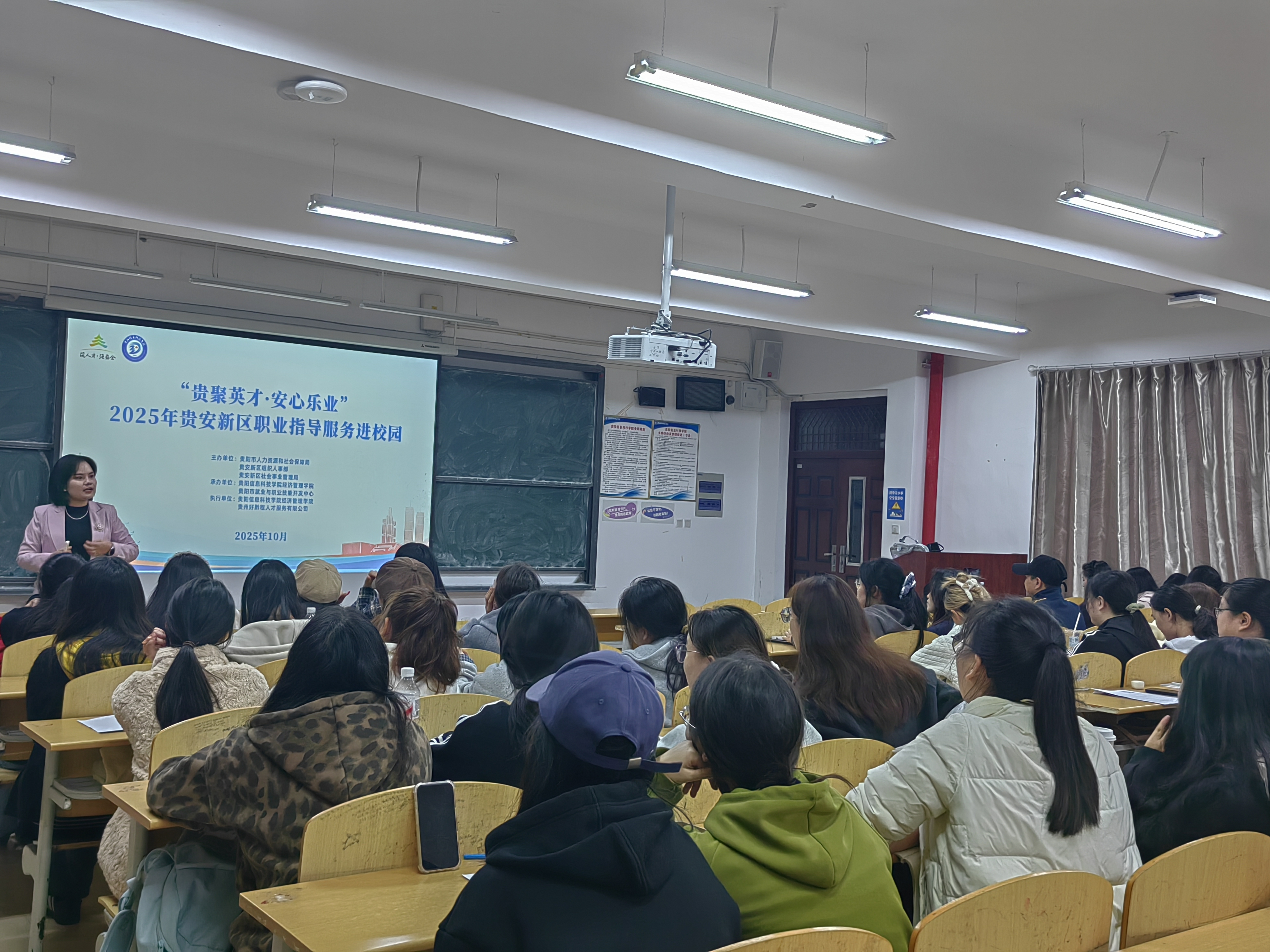新闻网讯(供稿/供图 赵政)2025年10月29日晚,经济管理学院于C209教室顺利举办就业指导专题讲座,特邀贵州省首期求职能力实训师、职业指导专家陈江艳,为近百名2026届毕业生作《提升简历制作的技巧》课程分享及一对一简历诊断。