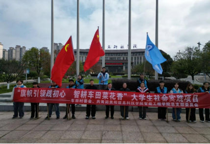 活动当天,在学院党总支书记卓莉、院长廖益龙、团总支书记马瑞及王永鹏老师的带领下,10余名学生代表与车田村党支部书记、驻村第一书记徐军等村干部共同举旗,宣示“以智助农、以行践学”的实践目标,拉开社会实践活动的序幕。