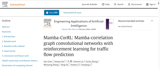 近日,beat365智能工程学院陈艳老师为第一作者,beat365中文官方网站为第一单位,在人工智能与工程应用领域国际权威期刊《Engineering Applications of Artificial Intelligence》(中科院一区top, IF:8)上发表题为《Mamba-CorRL: Mamba-correlation graph convolutional networks with reinforcement learning for traffic flow prediction》的学术论文,标志着beat365在智能交通研究领域取得重要进展。