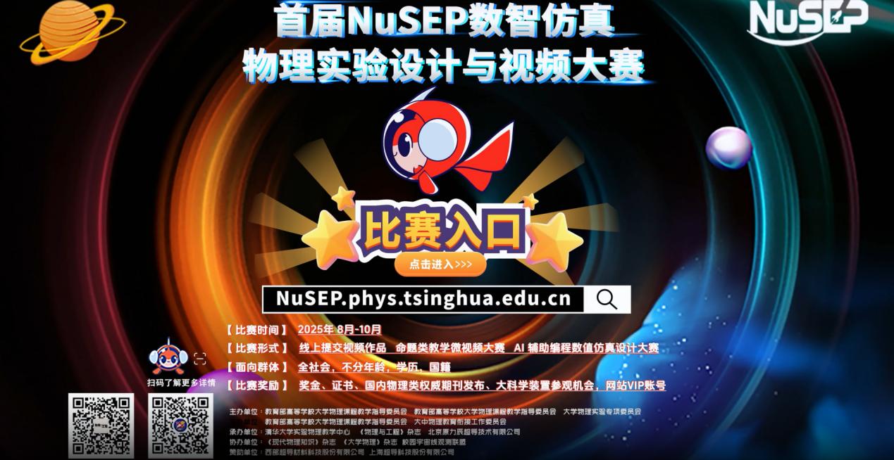 据悉,NuSEP数智仿真物理实验设计与视频大赛是聚焦“物理数智融合”的高水平实践探索平台,依托清华大学牵头开发的NuSEP数智仿真物理实验系统搭建赛事场景,设置教学微视频、AI辅助编程两大赛道,旨在推动人工智能技术与物理学教学的深度融合,培育学生的跨学科创新能力。本次大赛评审环节由24位跨领域资深专家组成评审团,以“物理思想+仿真创新+数智应用+教学价值”为核心评议标准,全程开展精细化、专业化评审,确保赛事结果的权威性与公正性。