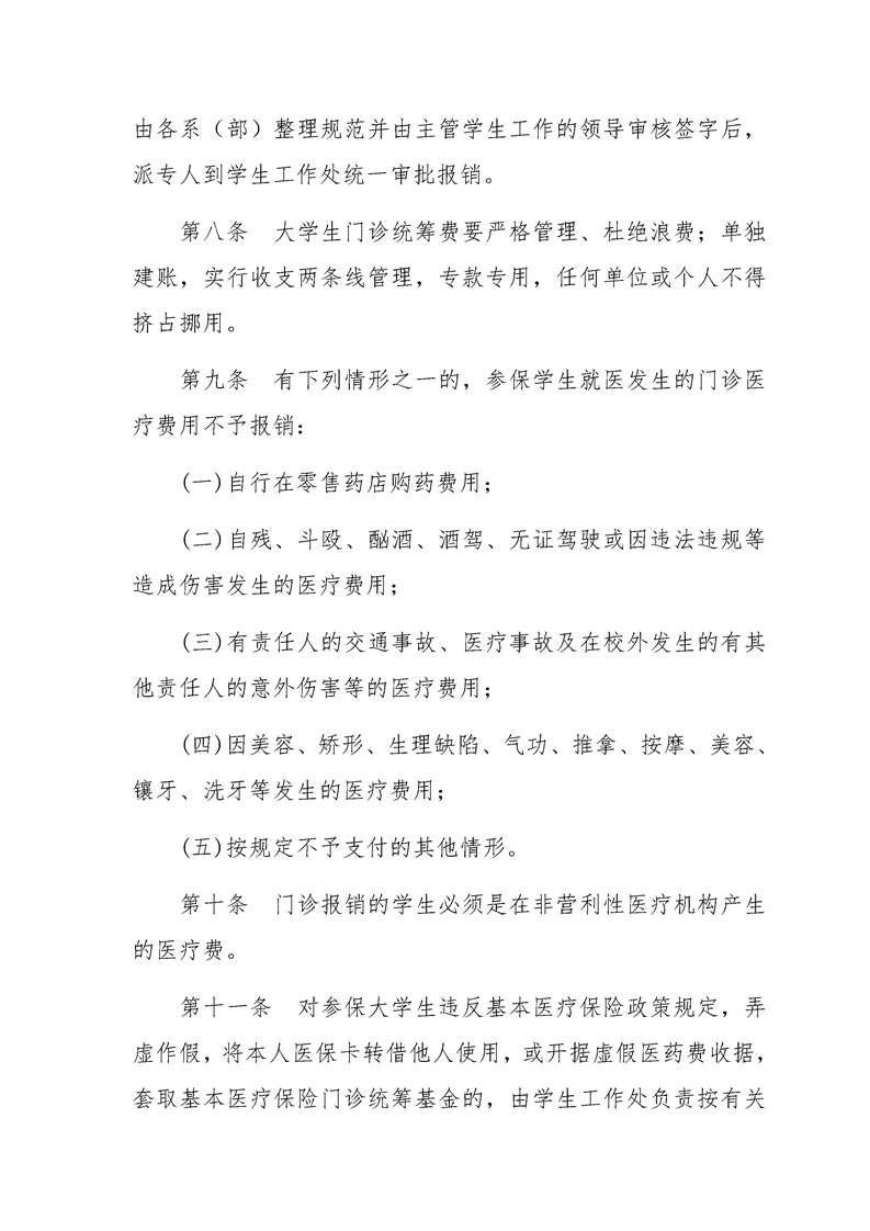 贵州大学明德学院在校大学生基本医疗保险门诊医疗费报销管理办法 (试行)