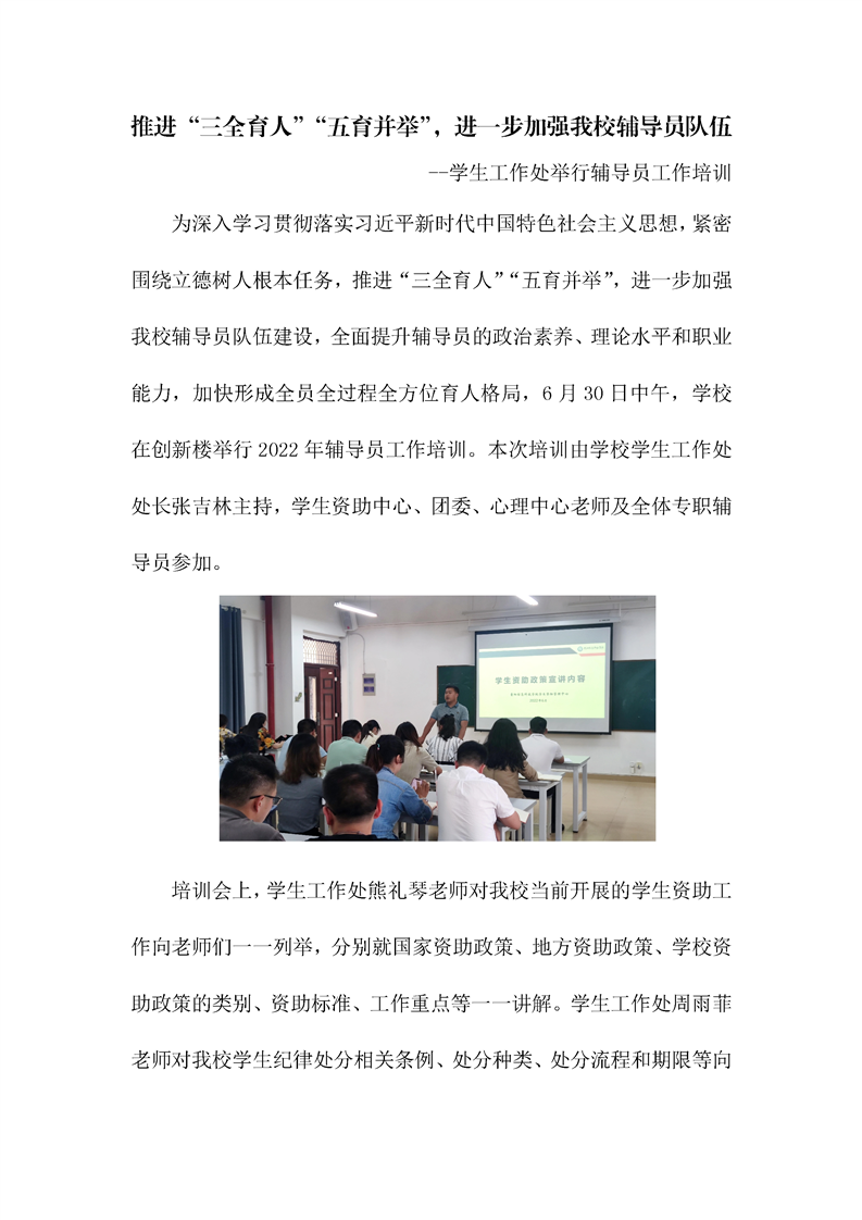 推进“三全育人”“五育并举”,进一步加强beat365辅导员队伍--学生工作处举行辅导员工作培训