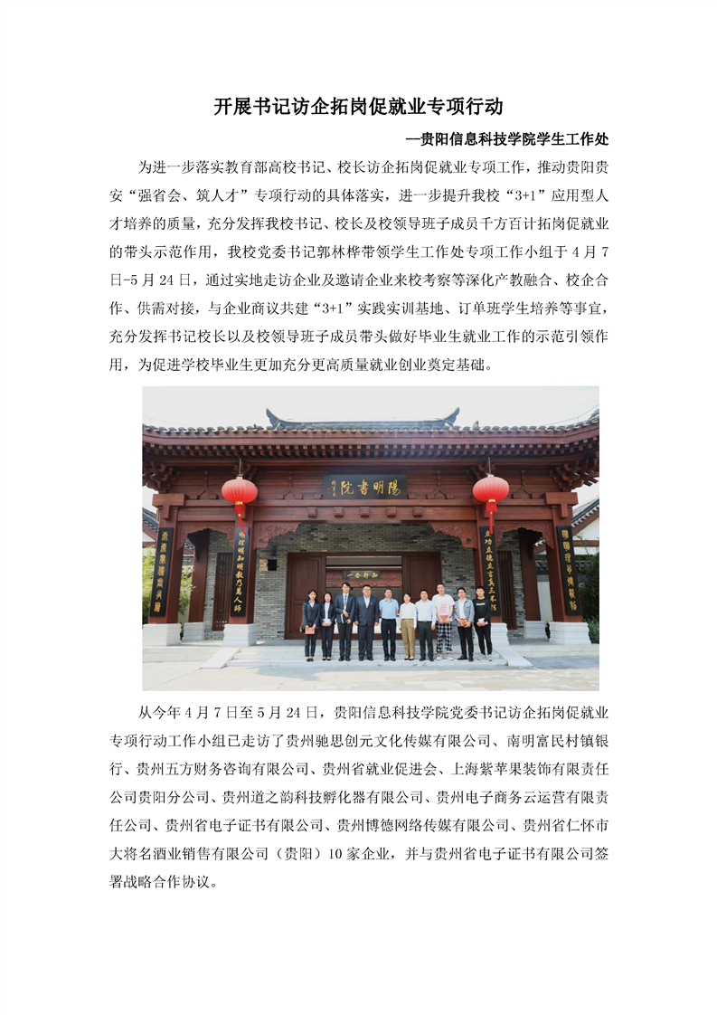 开展书记访企拓岗促就业专项行动--beat365中文官方网站学生工作处