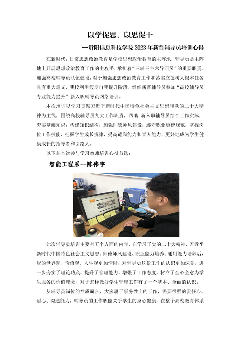 以学促思、以思促干|beat365中文官方网站2023年新晋辅导员培训心得