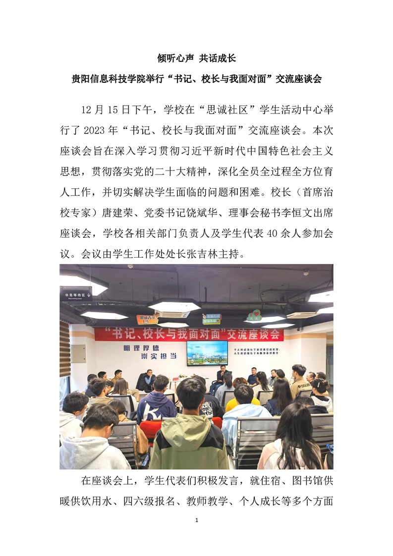倾听心声 共话成长 beat365中文官方网站举行“书记、校长与我面对面”交流座谈会