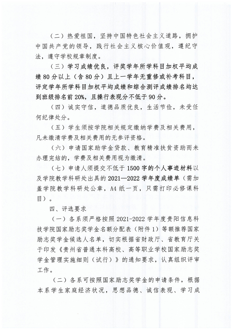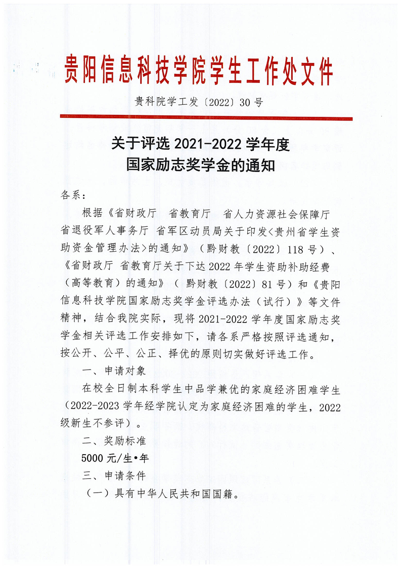 关于评选2021-2022学年度国家励志奖学金的通知