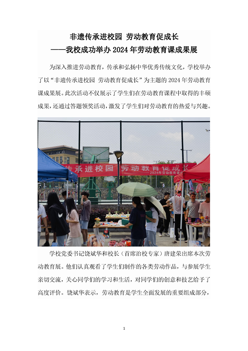 非遗传承进校园 劳动教育促成长-beat365成功举办 2024 年劳动教育课成果展