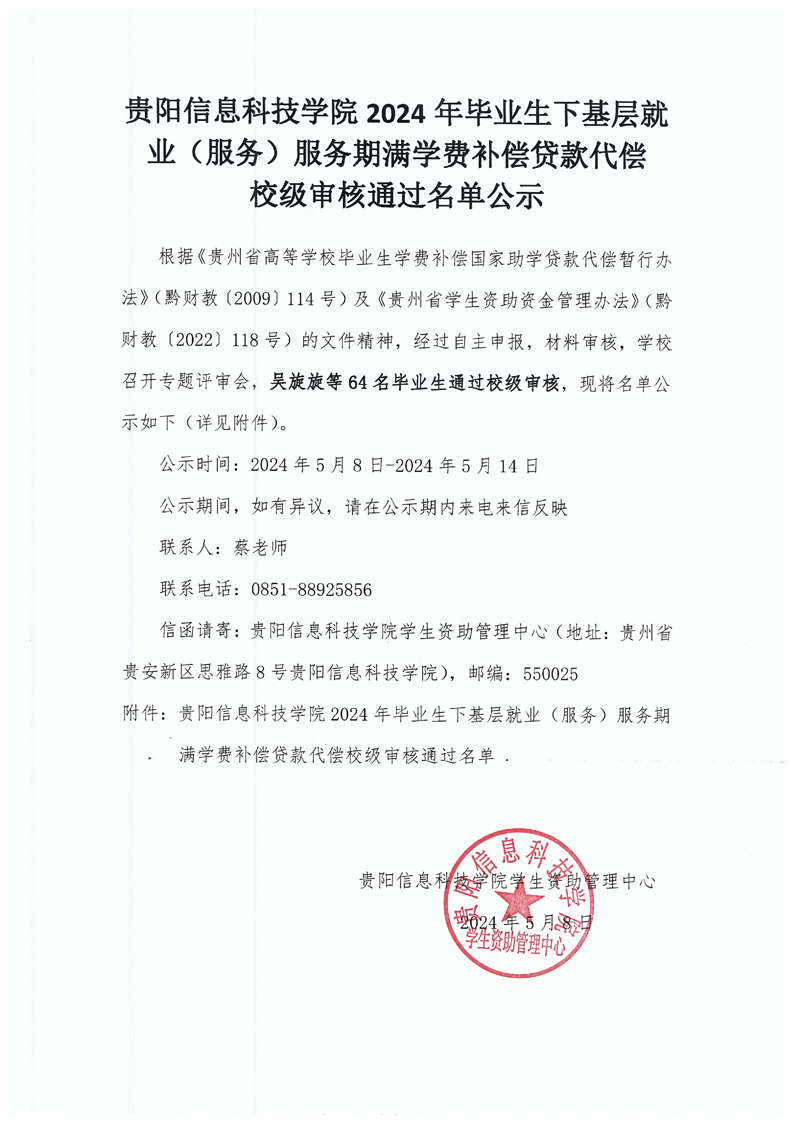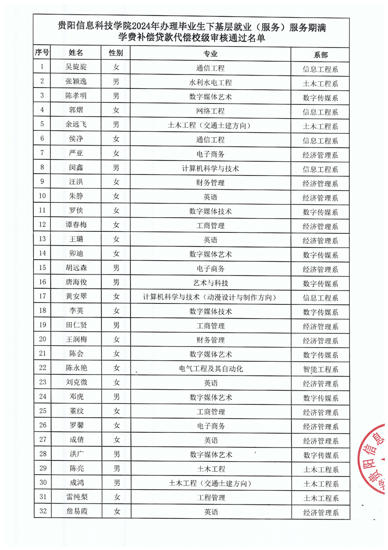 beat365中文官方网站2024年毕业生下基层就业(服务)服务期满学费补偿贷款代偿校级审核通过名单公示