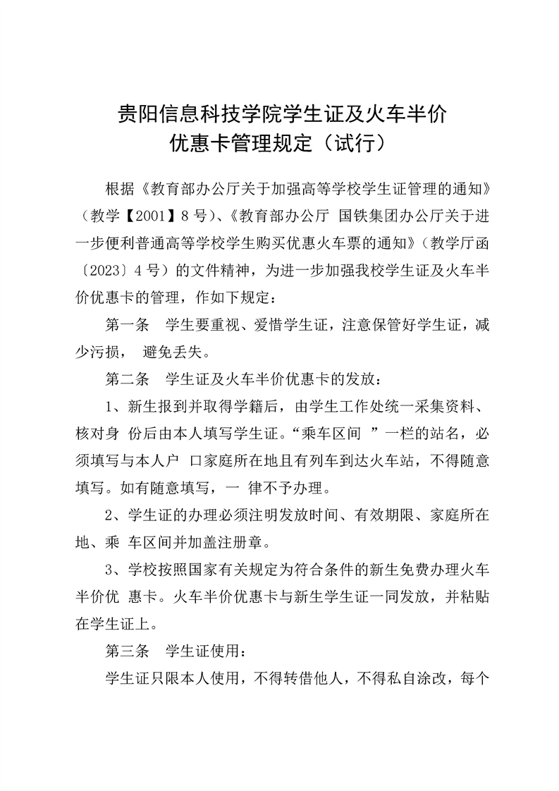beat365中文官方网站学生证及火车半价优惠卡管理办法(试行)2024年版