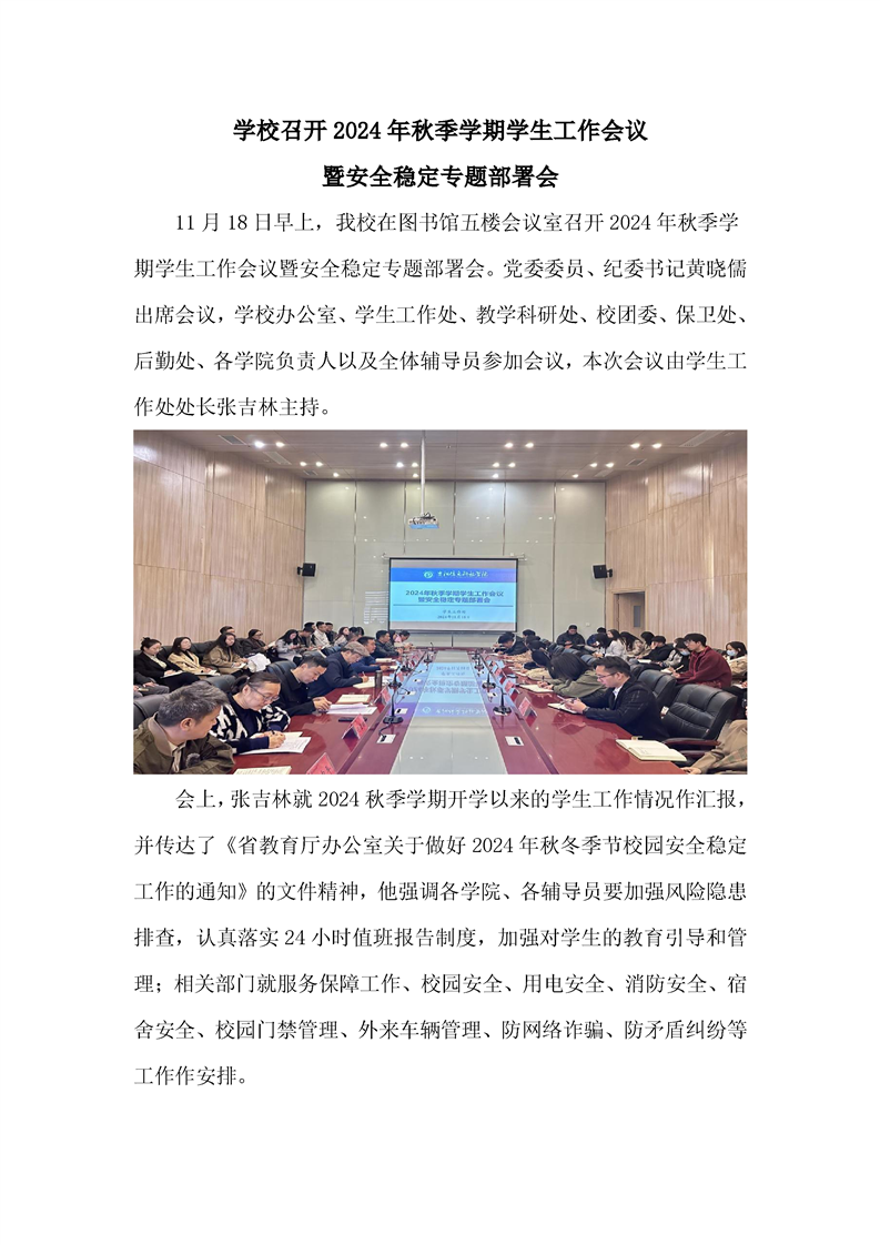 学校召开2024年秋季学期学生工作会议暨安全稳定专题部署会