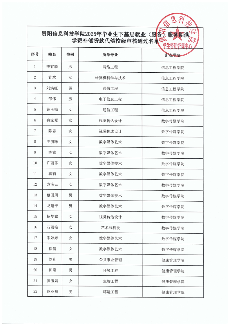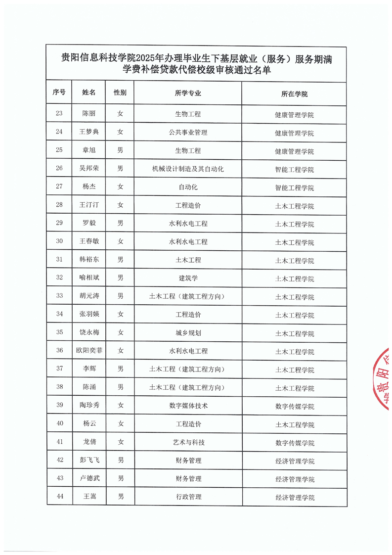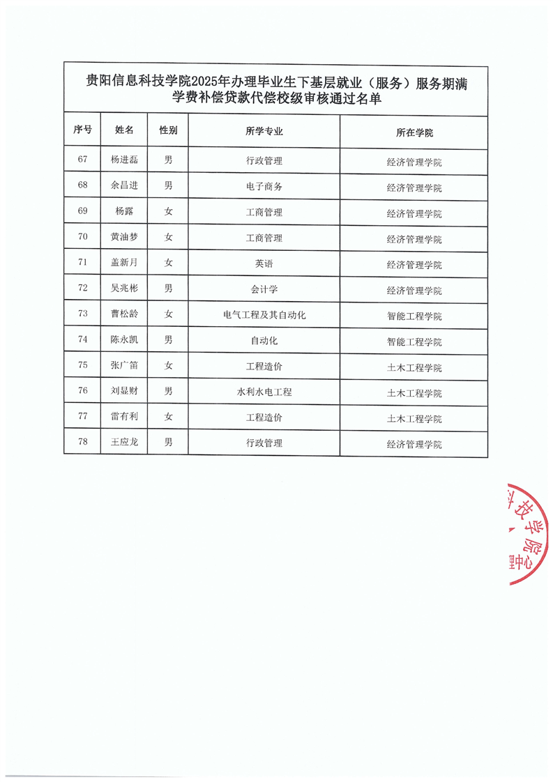 beat365中文官方网站2025年毕业生下基层就业(服务)服务期满学费补偿贷款代偿 校级审核通过名单公示