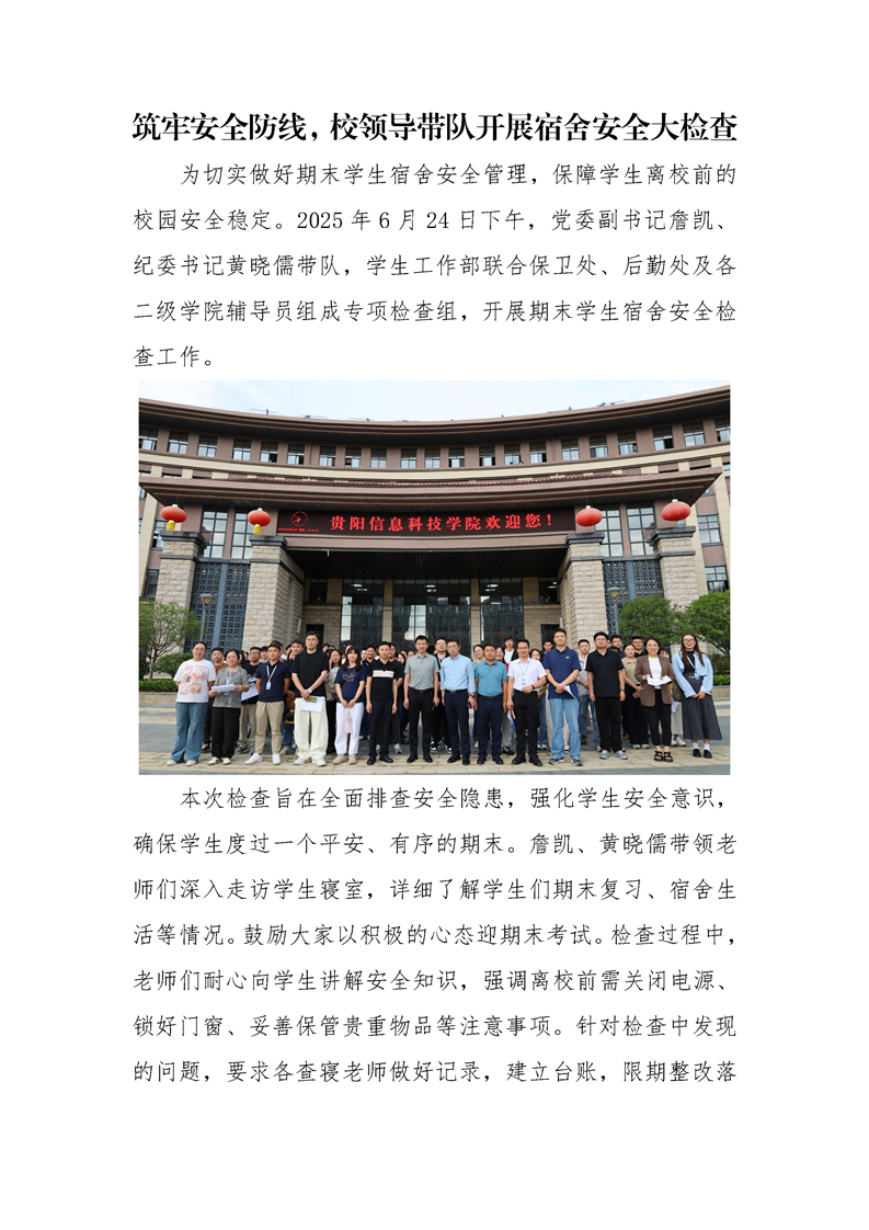 筑牢安全防线,校领导带队开展宿舍安全大检查