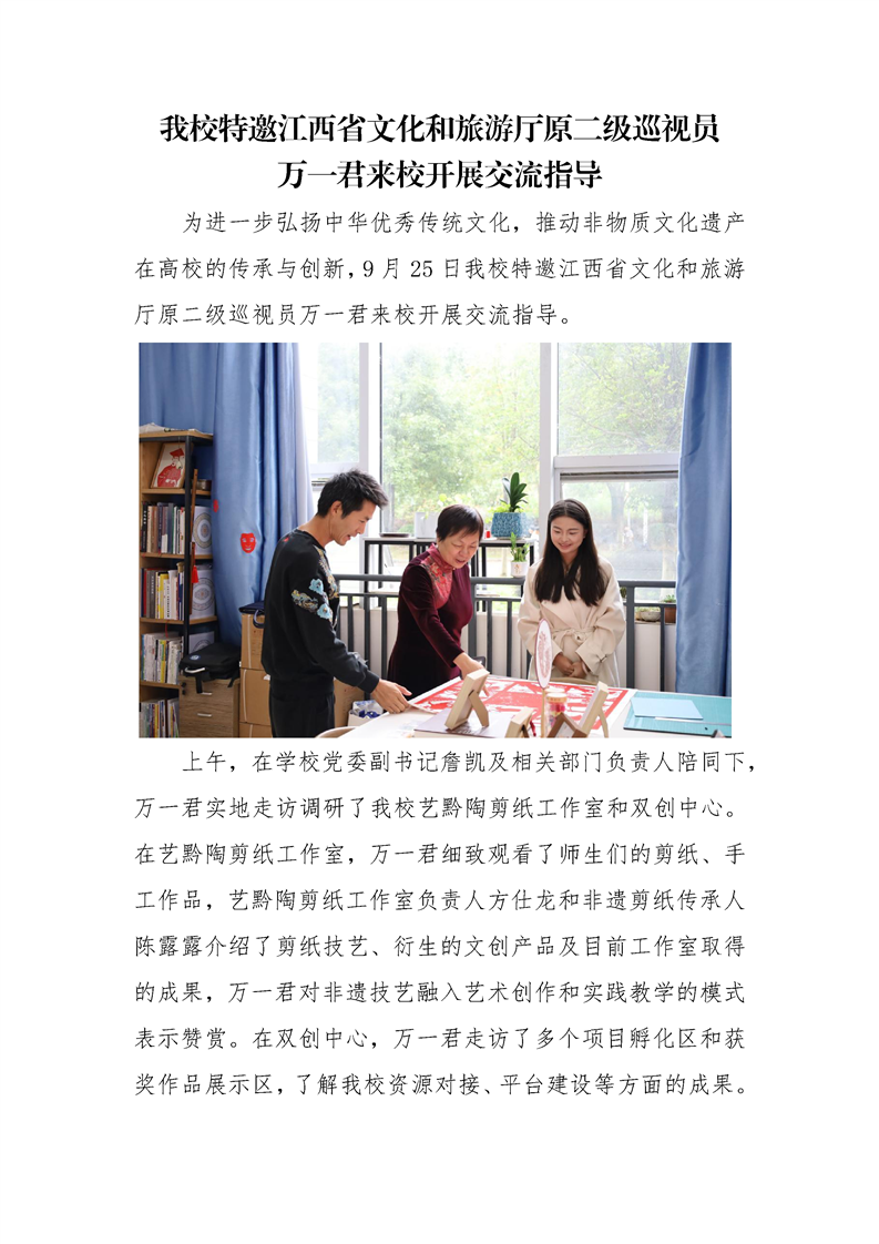 beat365特邀江西省文化和旅游厅原二级巡视员 万一君来校开展交流指导