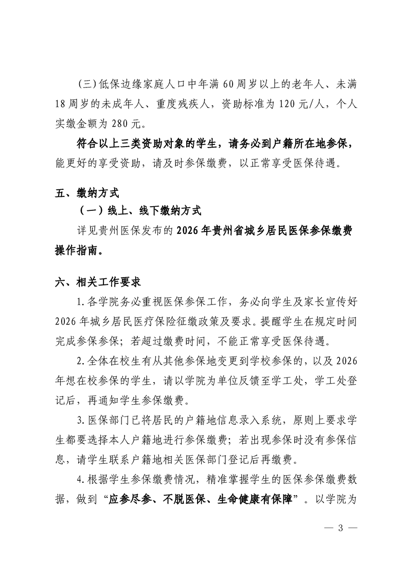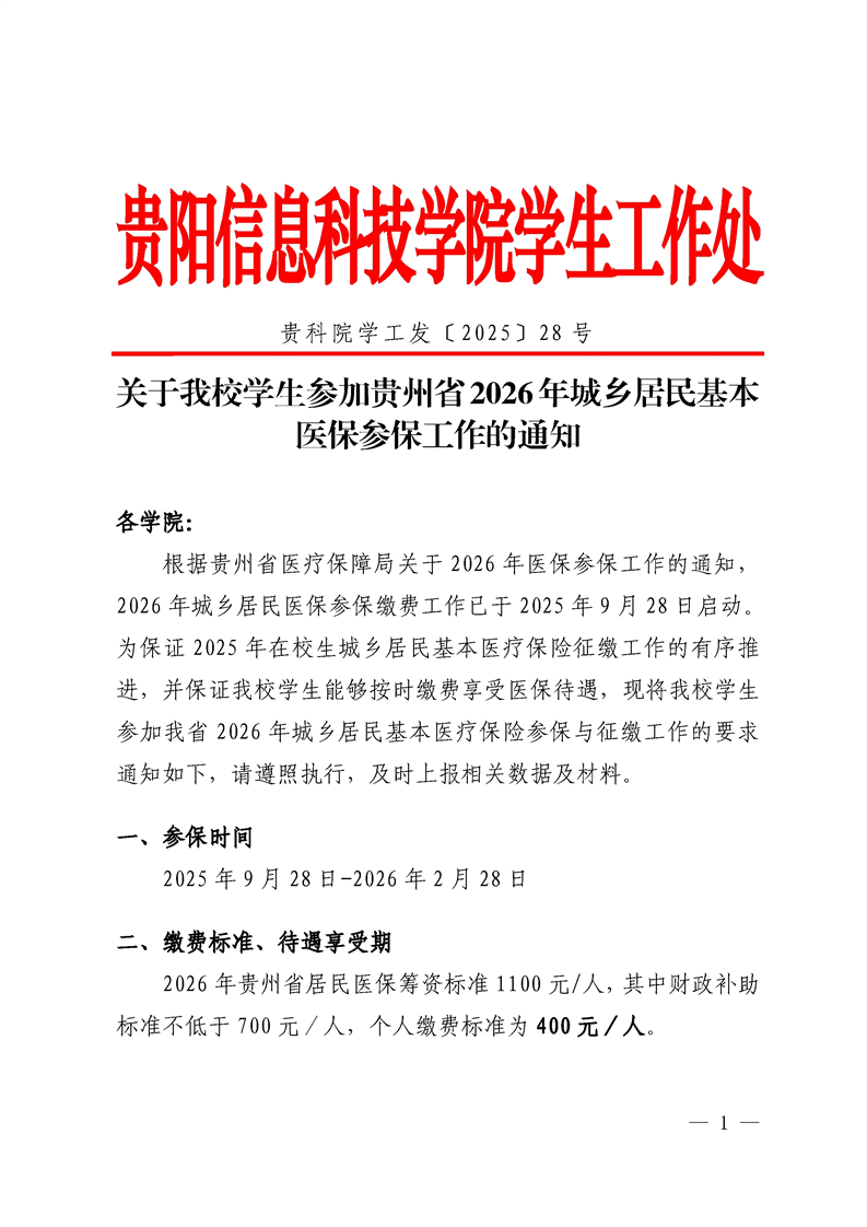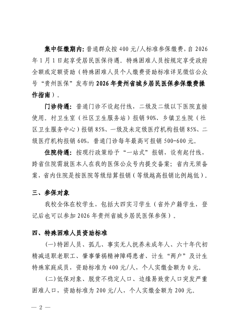 关于beat365学生参加贵州省2026年城乡居民基本医保参保工作的通知