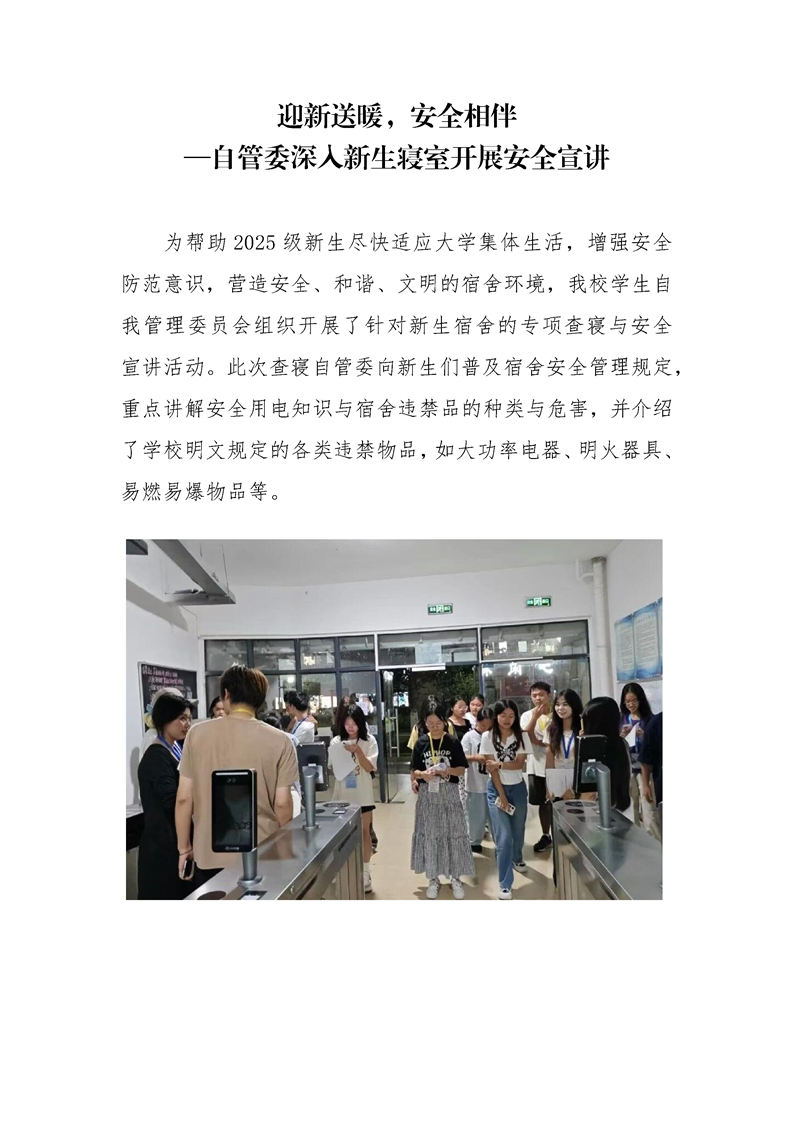 迎新送暖,安全相伴 —自管委深入新生寝室开展安全宣讲