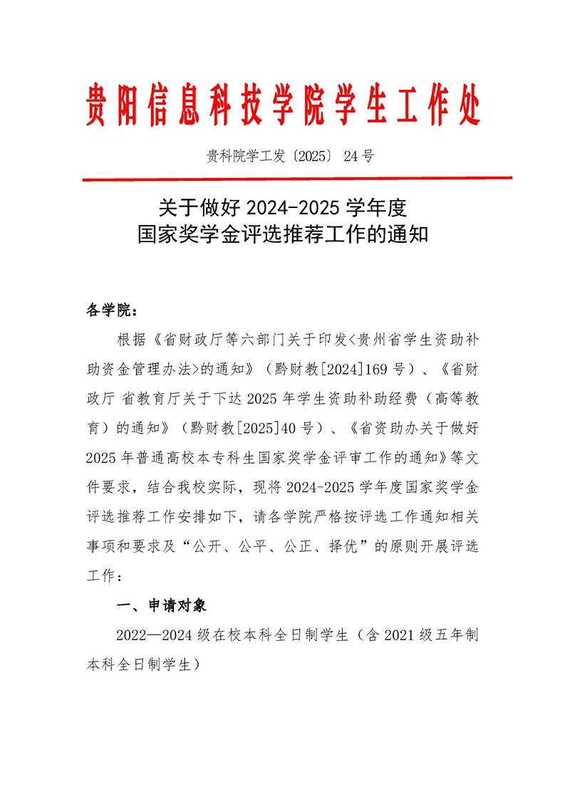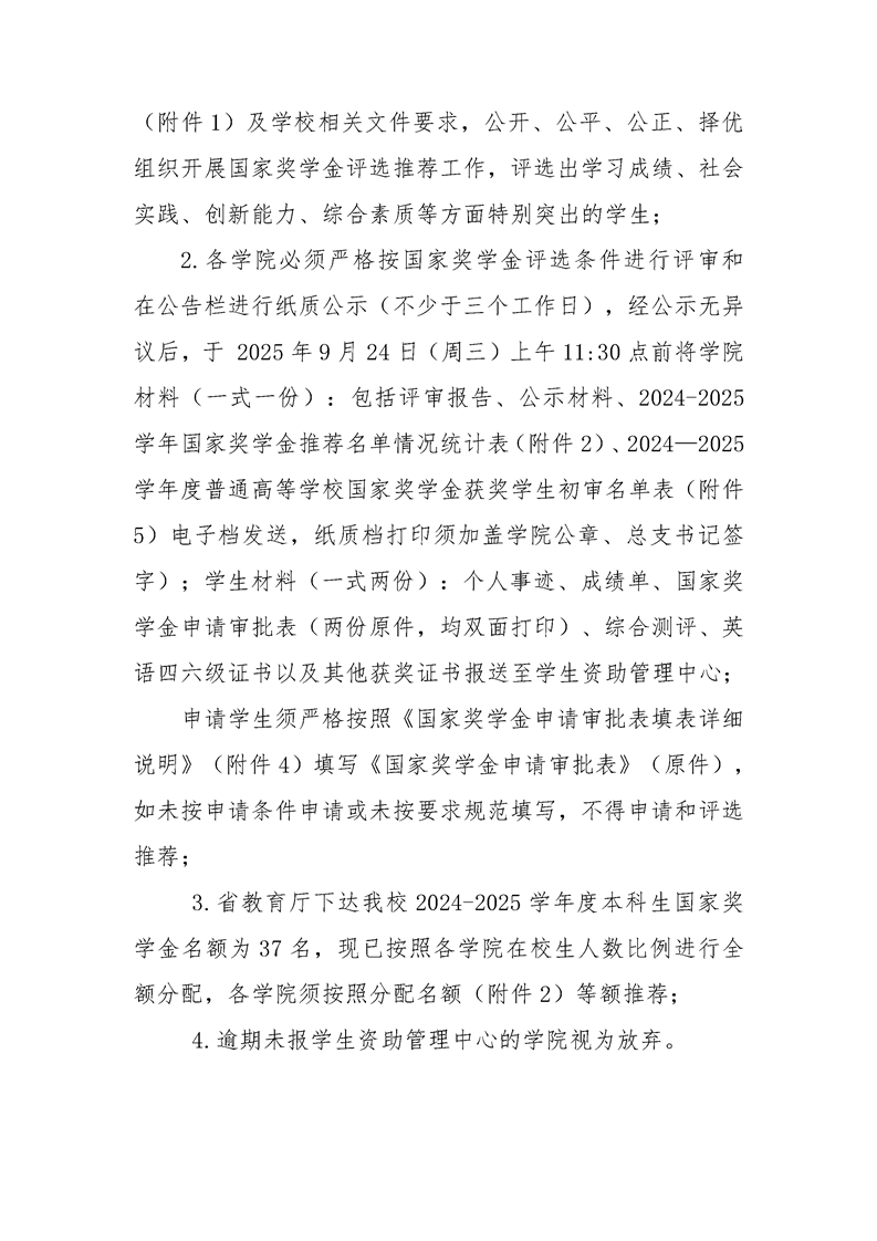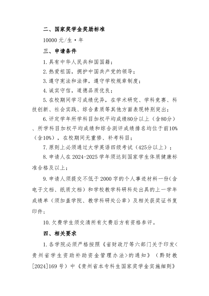 关于做好2024-2025学年度 国家奖学金评选推荐工作的通知