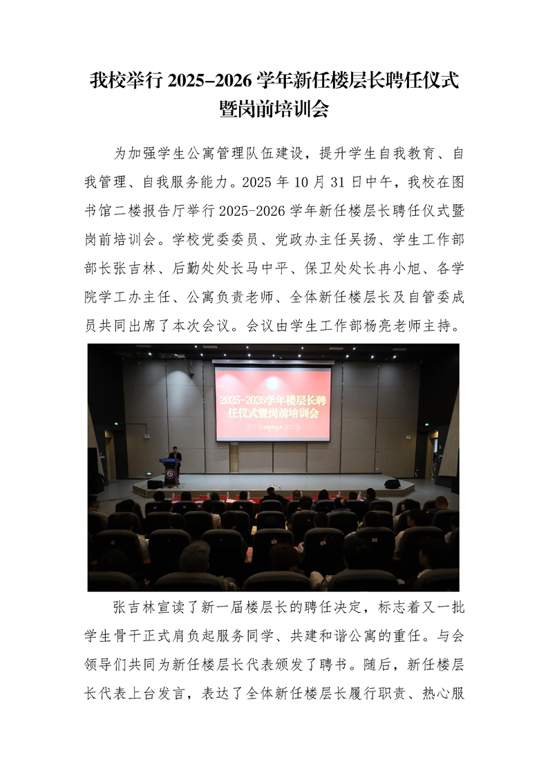 beat365举行2025-2026学年新任楼层长聘任仪式暨岗前培训会