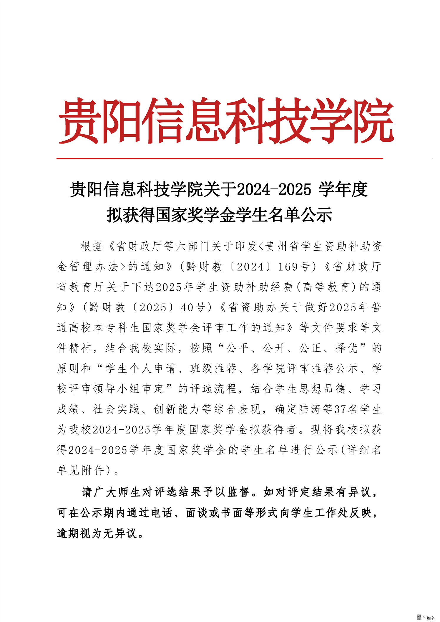beat365中文官方网站关于2024-2025 学年度 拟获得国家奖学金学生名单公示