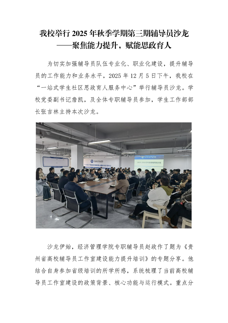 beat365举行2025年秋季学期第三期辅导员沙龙 ——聚焦能力提升,赋能思政育人